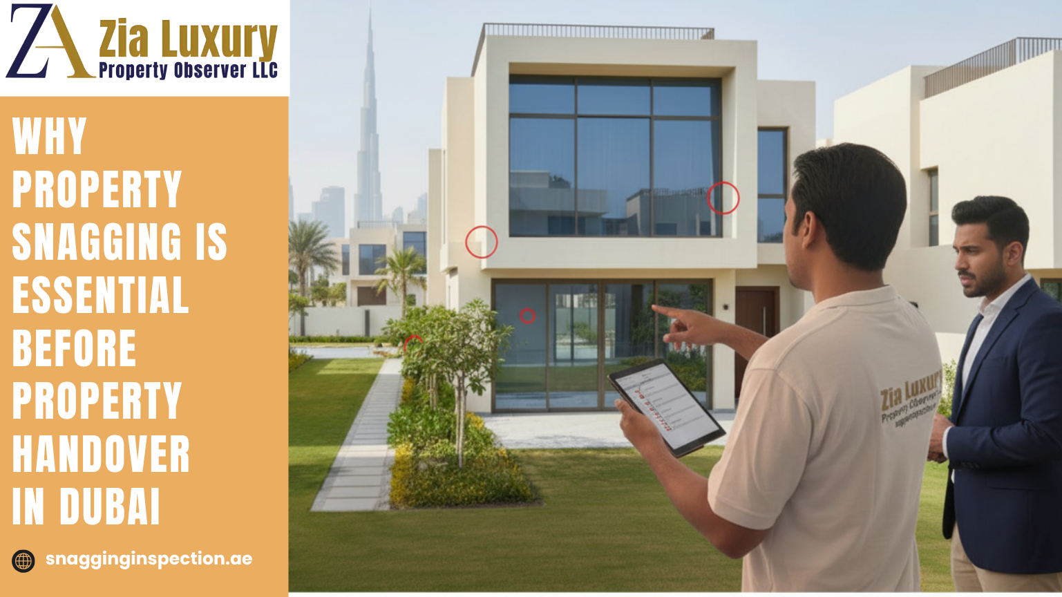 Snagging is a necessary process of identifying issues with your property. Snagging issues range from leaks, plumbing faults, un-level ceilings, floors and walls, Electrical, Mechanical. Zia Luxury Property Observer provides comprehensive property snagging and detailed reports, for residential and commercial properties. Trust our expertise for peace of mind. Our detailed reports offer transparent insights into our findings, empowering you to make informed decisions about your property. Property Inspection, where excellence meets reliability in inspection services. With a dedication to precision and safety, we ensure every project meets the highest standards, providing you with peace of mind and confidence in its success. Contact Us: Email: support@snagginginspection.ae Mobile Number: 009715690-19343 Website: https://snagginginspection.ae/