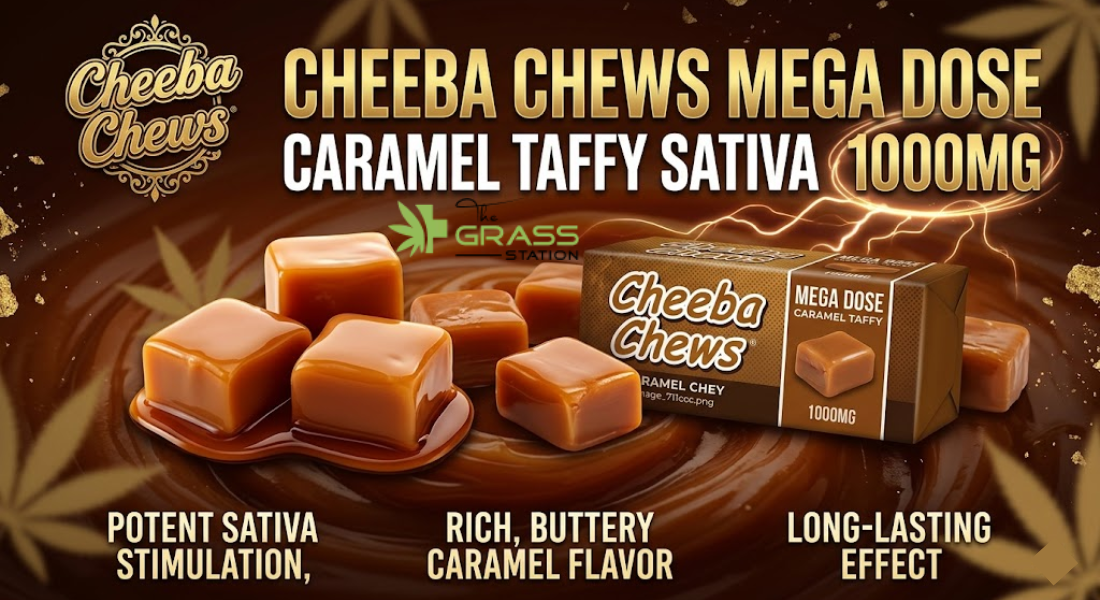 Shop 1000mg THC Edibles at The Grass Station. Featuring Cheeba Chews Mega Dose Sativa Caramel Taffy. High-potency, lab-tested, and professionally crafted.