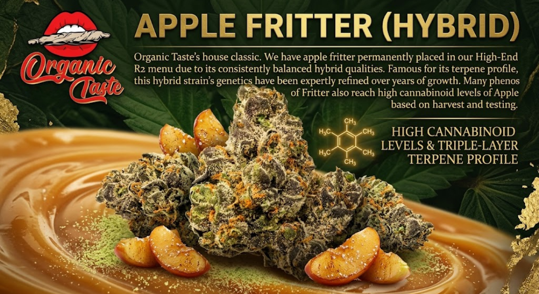 Explore the Apple Fritter Strain, a premium hybrid curated by Organic Taste. Discover high-quality, lab-tested THCa flower. Shop our selection today.