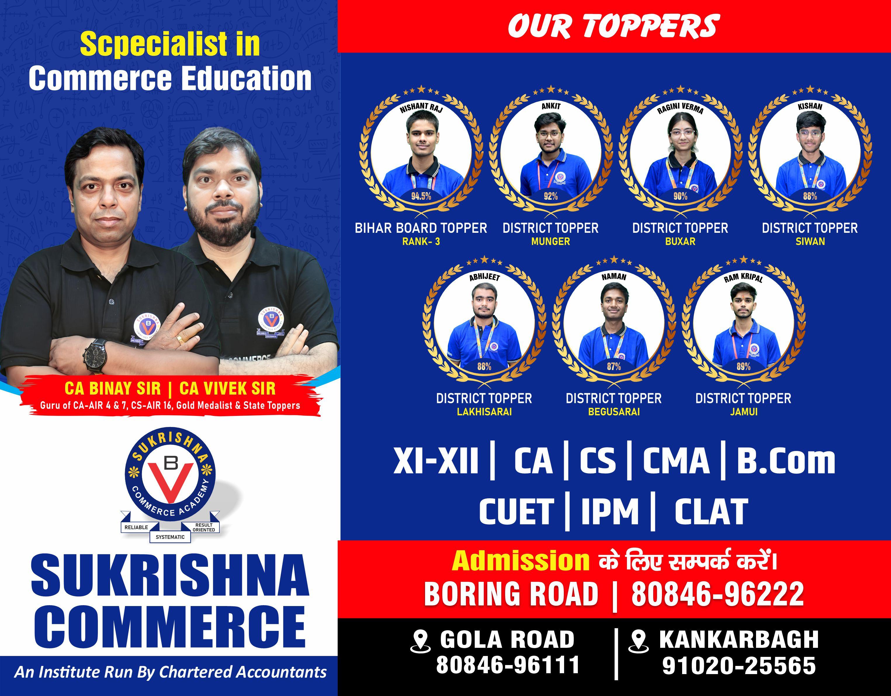 Unlock your true potential with Sukrishna Commerce Academy , the name that defines success in commerce education in Bihar.