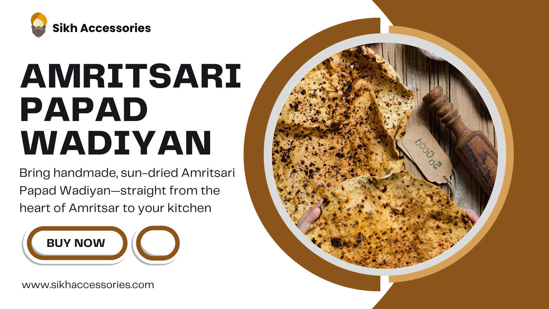 Experience the true taste of Punjab with authentic Amritsari Papad and Wadiyan, now available online at SikhAccessories.com. Handcrafted using traditional recipes and pure ingredients, our papads and wadiyan bring home the rich, spicy flavors of Amritsar. Perfect for everyday meals, festive cooking, or gifting to loved ones who miss homemade Punjabi taste. Choose from a variety of textures and spice levels — all hygienically packed and delivered fresh to your doorstep across India and abroad.